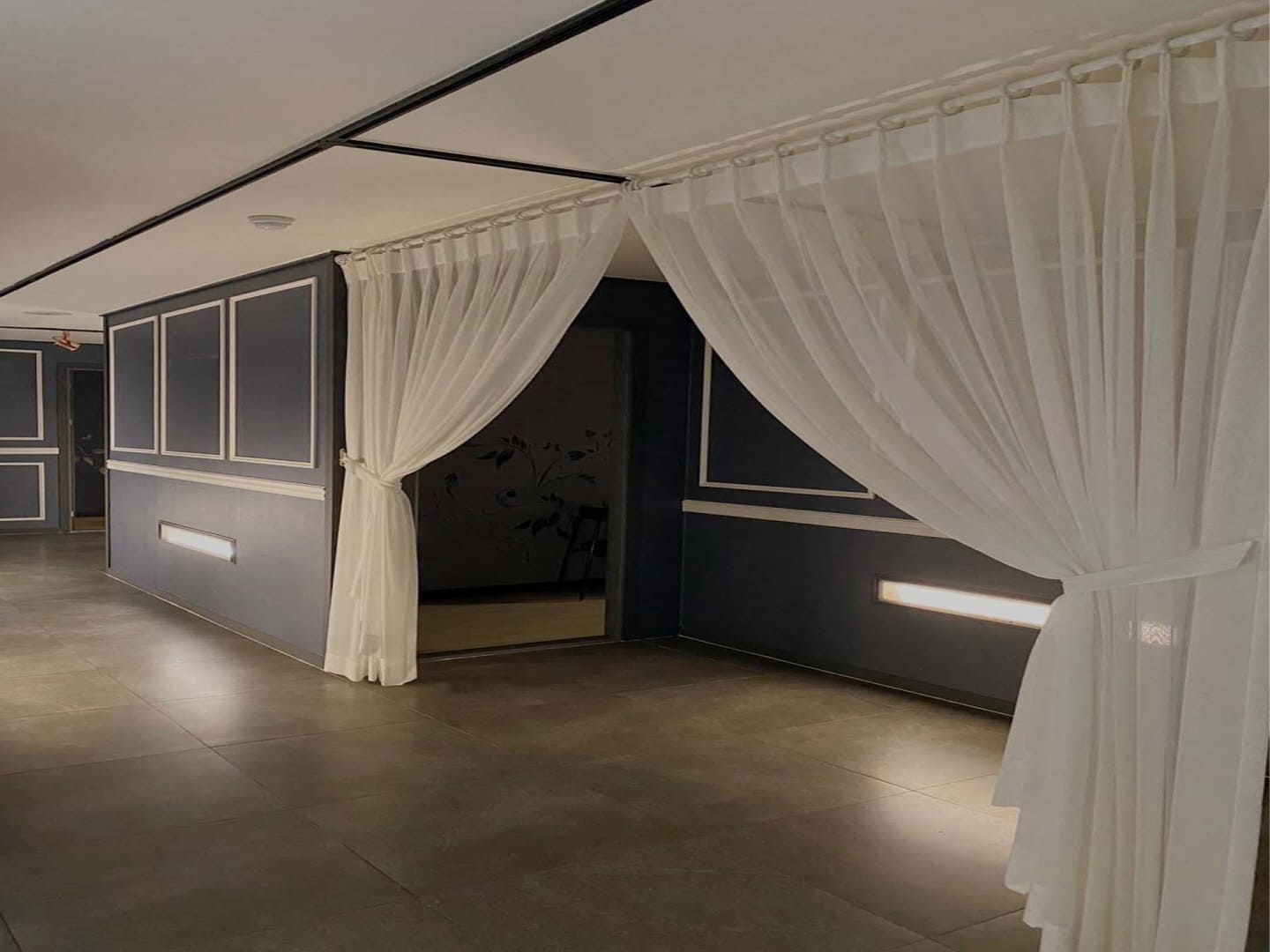 이곳이 바로 삼산동 스웨디시 실내입니다. 몽환적인 분위기를 연출하는 커튼을 사용해서인지 뭔가 프라이빗하다는 생각이 들게끔 만들어주는 것 같은데요, 내부가 훤히 비치는 것보다 이렇게 어느 정도 가려주는 게 조금 더 신비로운 분위기를 연출하는데 도움을 주는 것 같습니다.