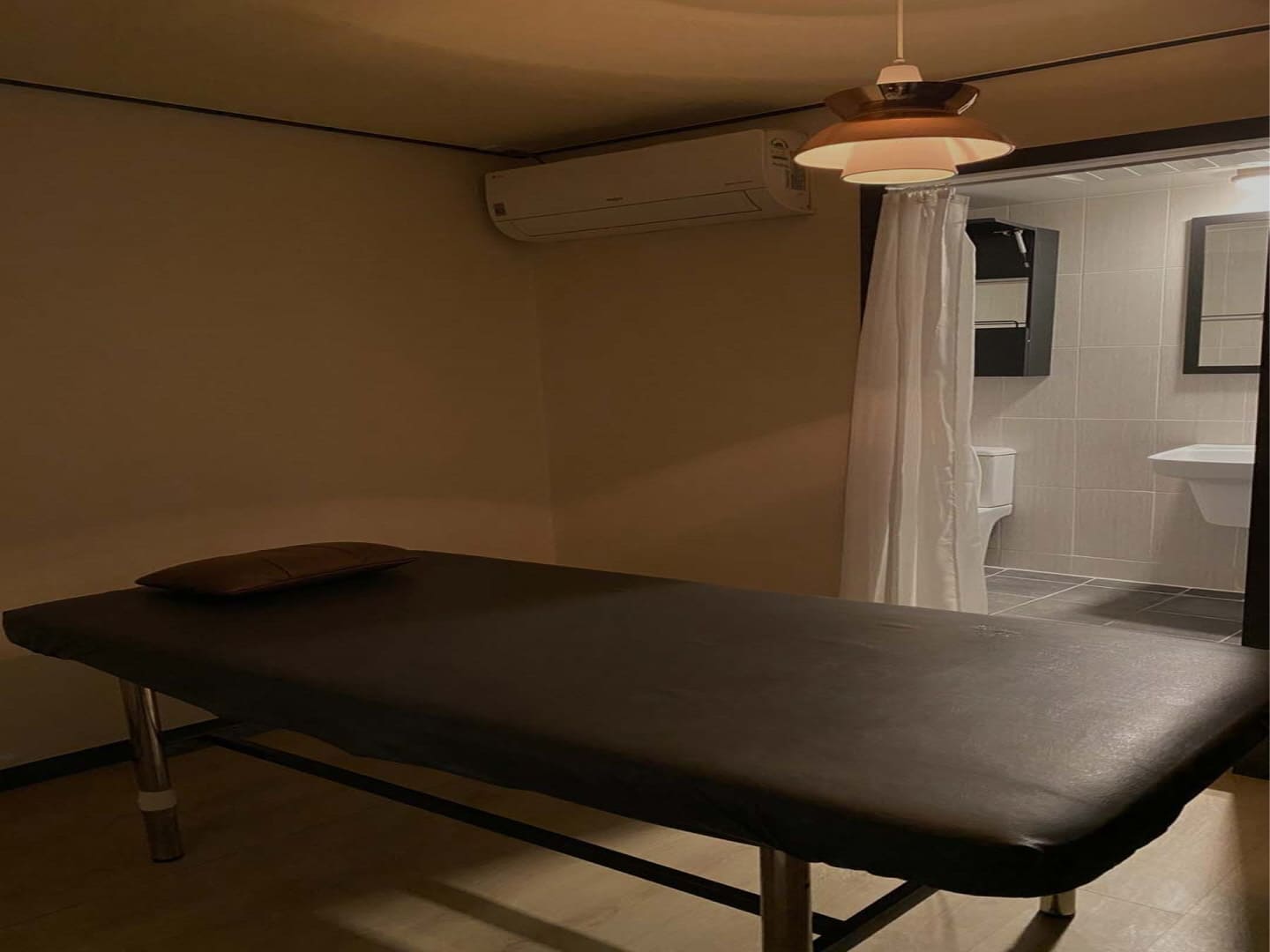 다음으로 만나볼 곳은 삼산동 스웨디시 관리실인데요, 개인룸 형태로 되어있으며 안쪽에는 개별 샤워실까지 준비가 되어있는것을 볼 수 있습니다. 조명이 밝은 편이 아니며 얼굴이 아닌 다리 쪽에 위치를 하고 있어서 전면 관리 시에도 눈이 편안하다고 해요.